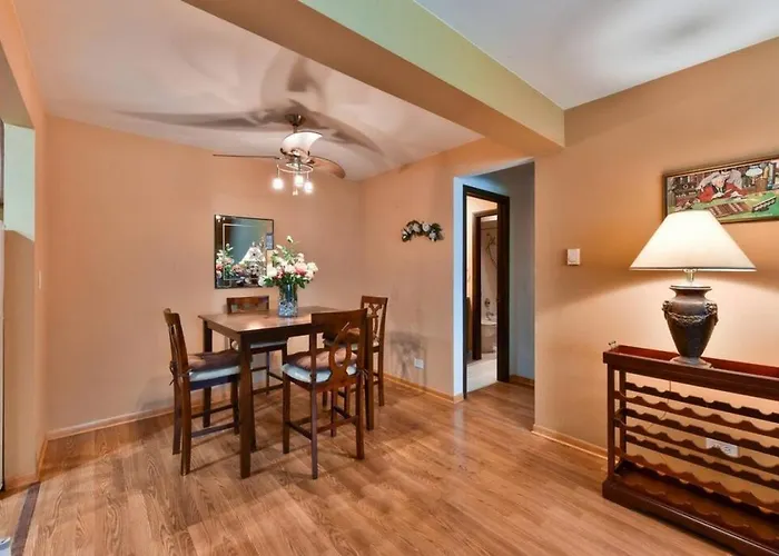 Nestled nearly a 10-minute drive from Donald E Stephens Convention Center, the spacious 1-bedroom Luxurious Condo In Top Rated Neighborhood allows guests to explore numerous tourist destinations in the vicinity. The apartment features Wi-Fi throughout the property.